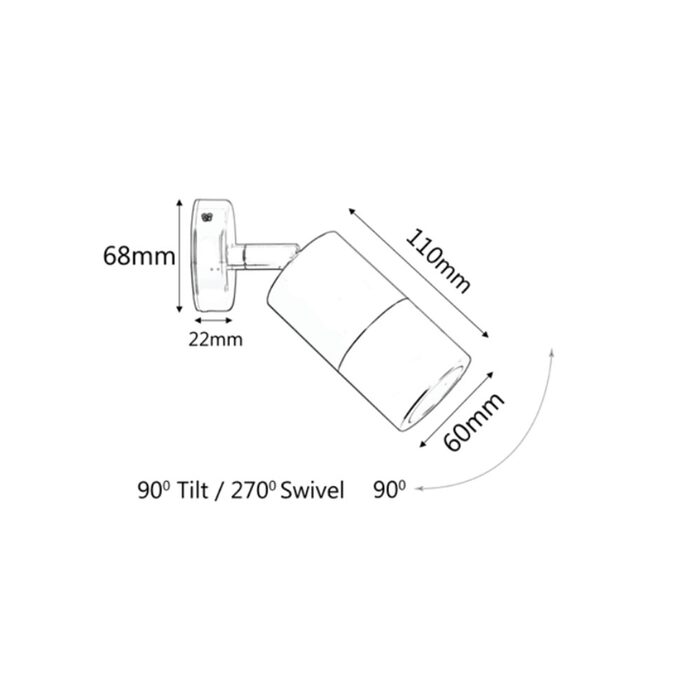 Suits a GU10 lamp (not included). Backed by a 2 Year Warranty.