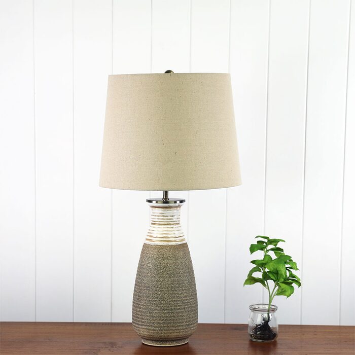 The Potton ceramic table lamp comes complete with a natural linen shade. At 63cm tall, the Potton is a statement piece that can adapt to most rooms in your home. The on/off switch is located on the cord.