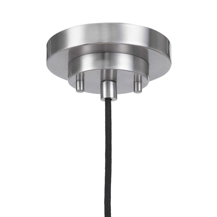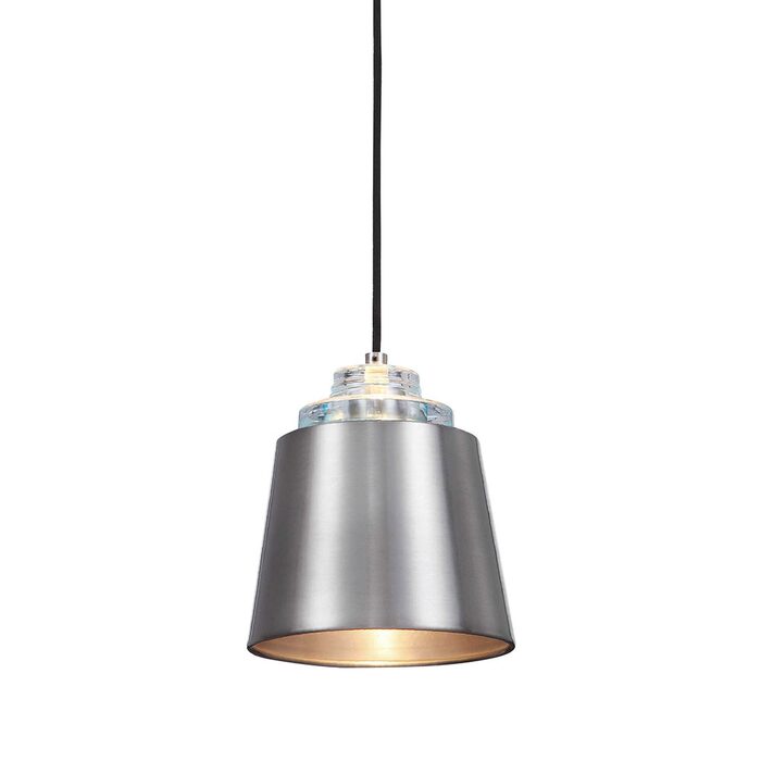 Refined industrial in feel our mini pendant shows off an aqua glass cap at the top of the spin brushed nickel shade.