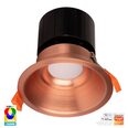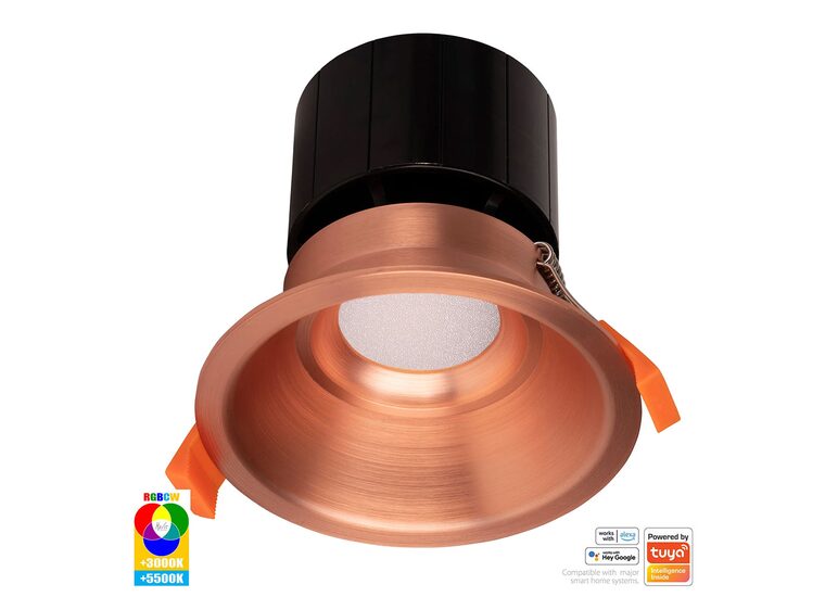 The Havit HV5514RGBCW-CP Prime is a 12W, 90mm cut-out, copper smart LED downlight featuring RGBCW (RGB + Warm & Cool White) colour control, WiFi connectivity, and deep-recessed glare reduction.