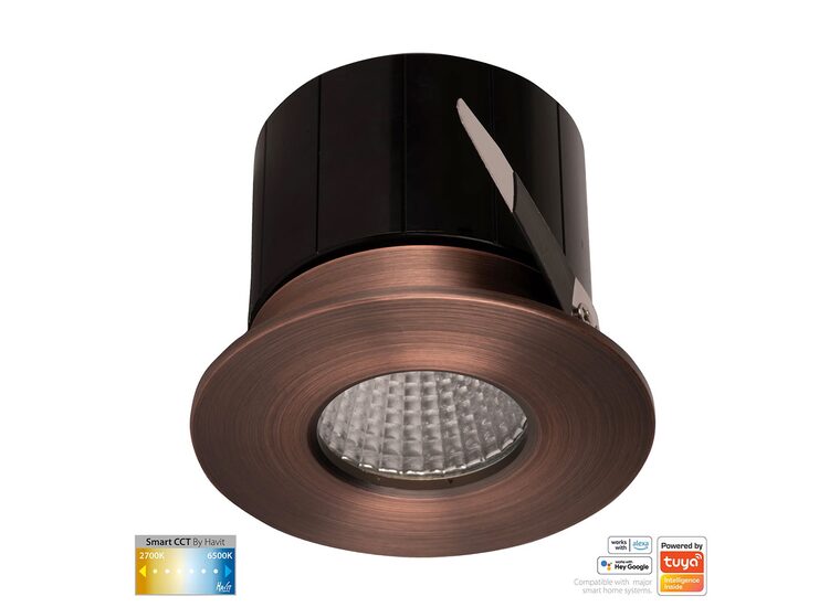 The Havit HV5511CCT-AB Prime is a smart, fixed, recessed LED downlight with an antique brass finish.
