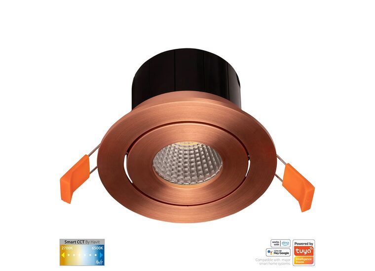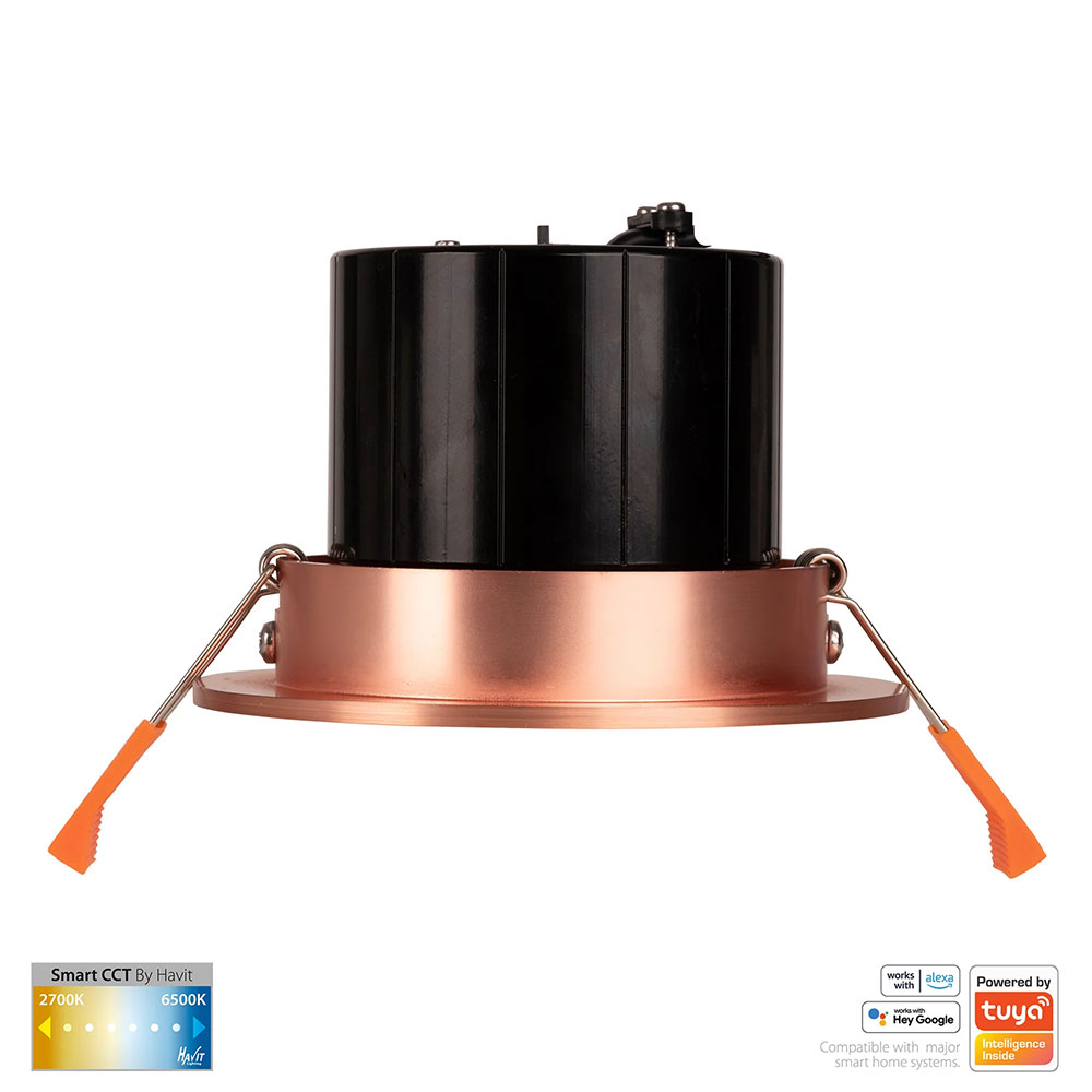 The HV5512CCT-CP is a Havit Prime Smart 12W Aluminium Recessed LED Downlight with a copper finish.