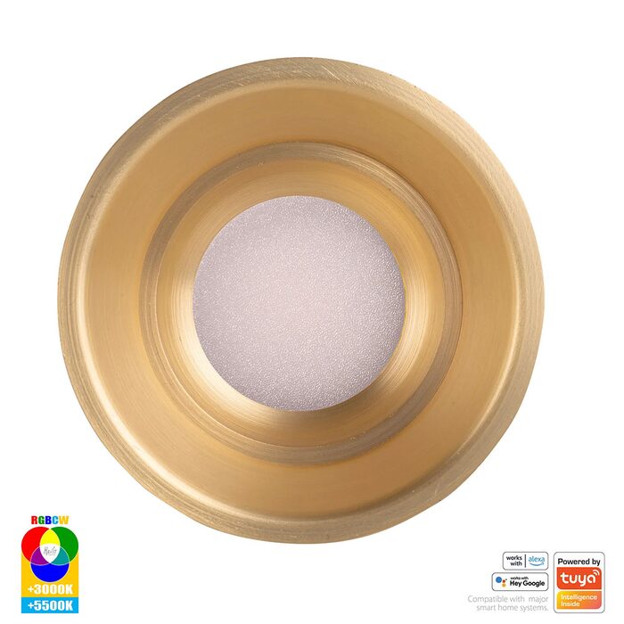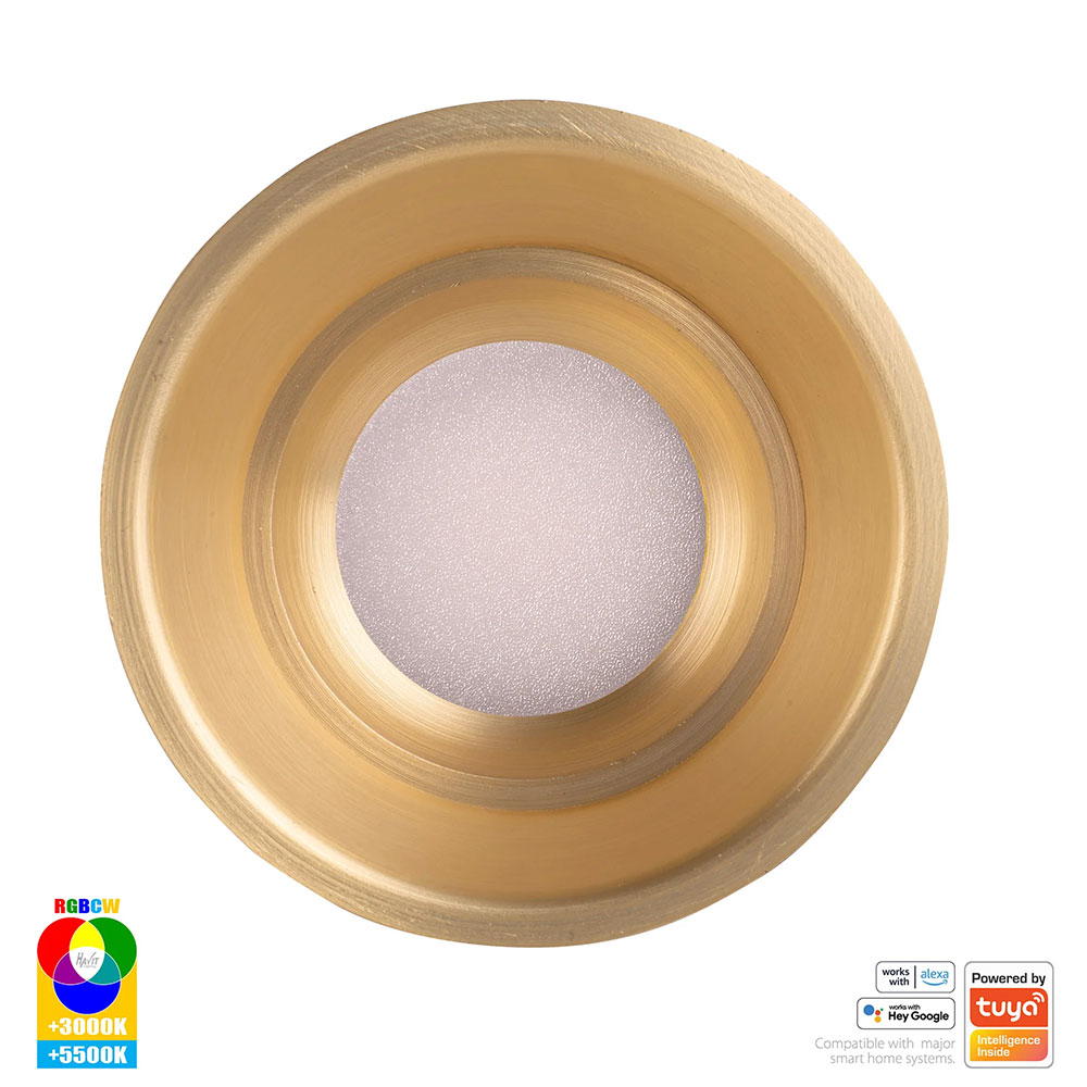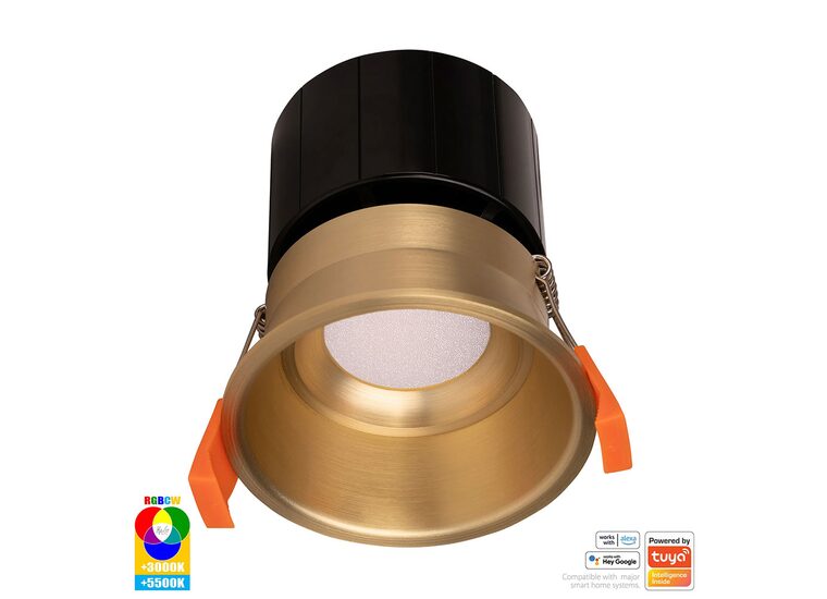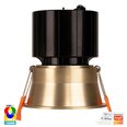 The HV5513RGBCW-BR is a smart, fixed, deep-recessed 12W LED downlight from Havit Lighting, featuring a brass finish.
