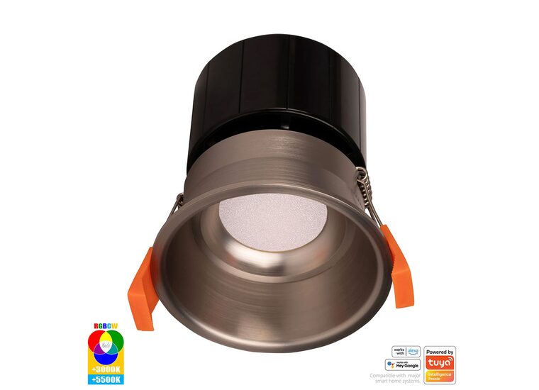 The HV5513RGBCW-NK is a Havit Prime, fixed, deep recessed, smart Wi-Fi LED downlight with a nickel finish.