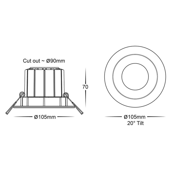 - Cutout: 90mm