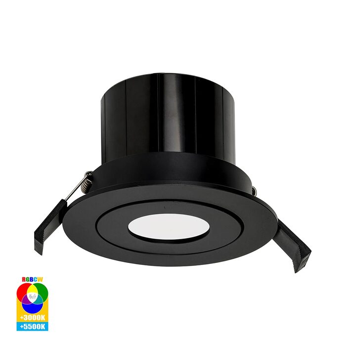 Prime Wi-Fi 12W RGBCW 240V LED Tilt Downlight Black - HV5512RGBCW-BLK