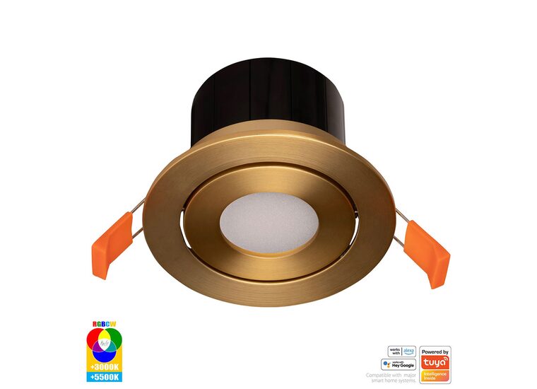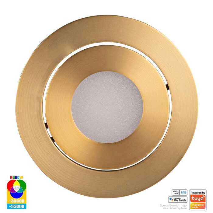 The HV5512RGBCW-BR is a Havit Prime Smart Wi-Fi RGBCW LED Adjustable Downlight in a brass finish.