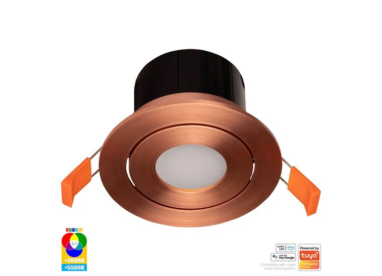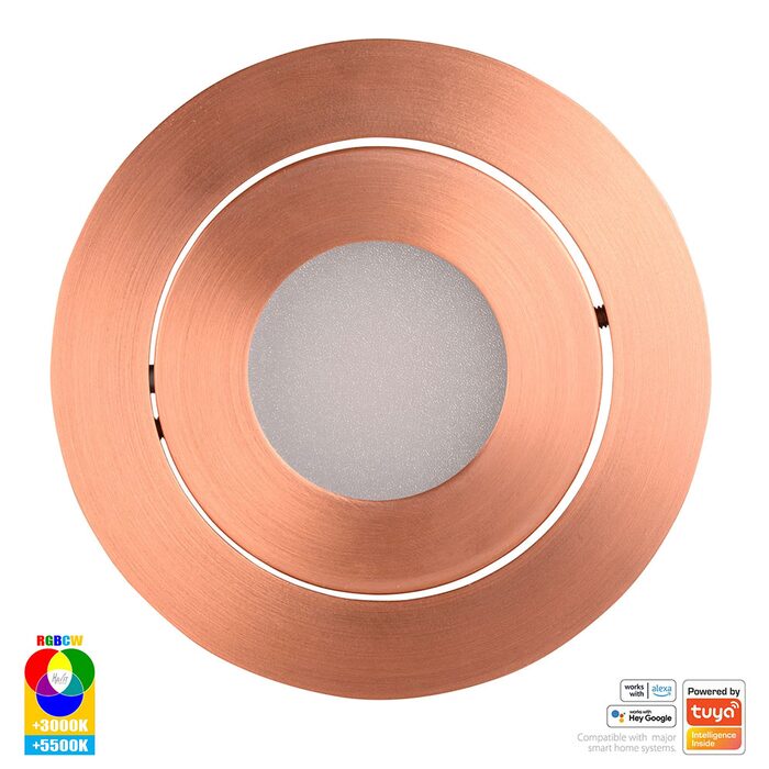 The HV5512RGBCW-CP is a Havit Prime Tilt RGBCW WIFI LED Downlight with a copper finish.