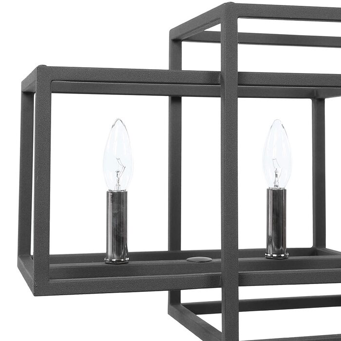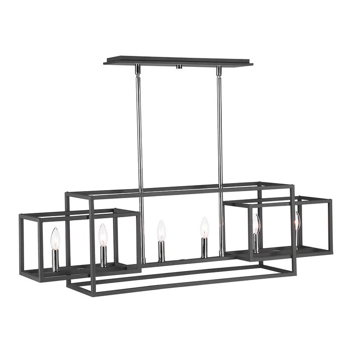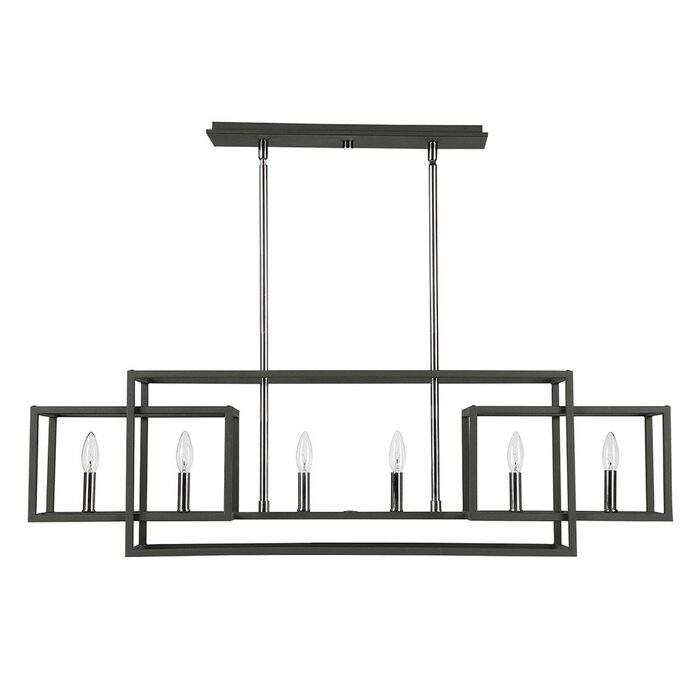 Clean rectangles in sanded Black texture finish with polished nickel accents complete this 6 Lt linear chandelier.