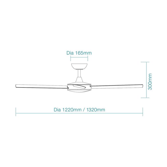 Powered by an efficient 36W DC motor, this ceiling fan is available in 48" (1220mm) and 52" (1320mm) sizes and is built with durable ABS construction for lasting performance