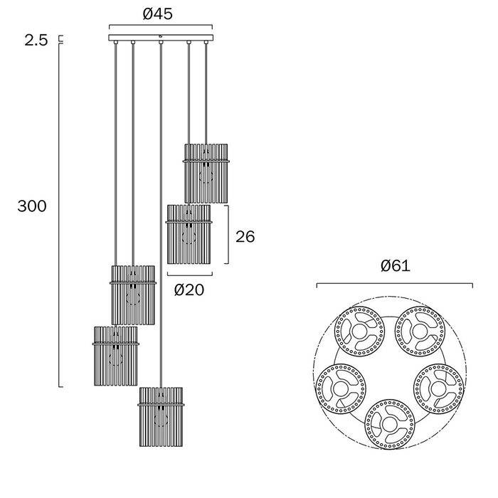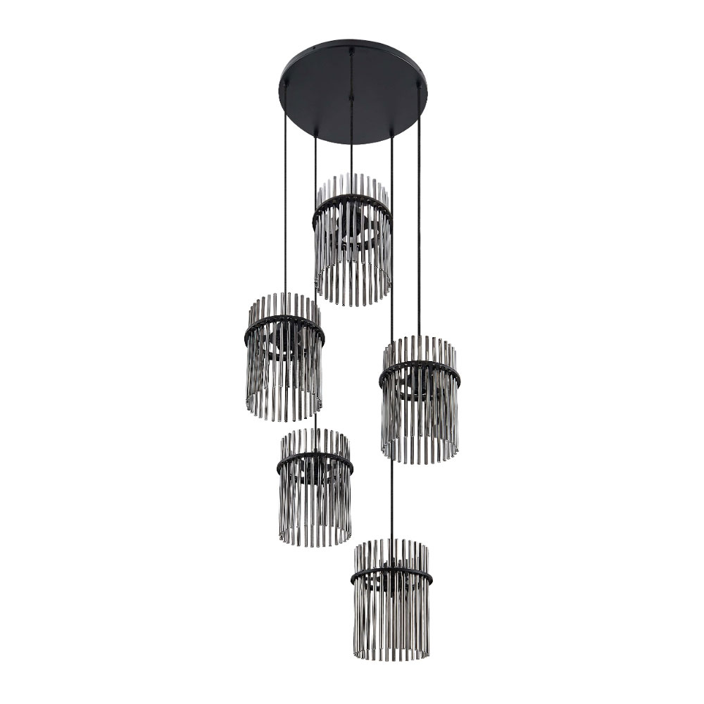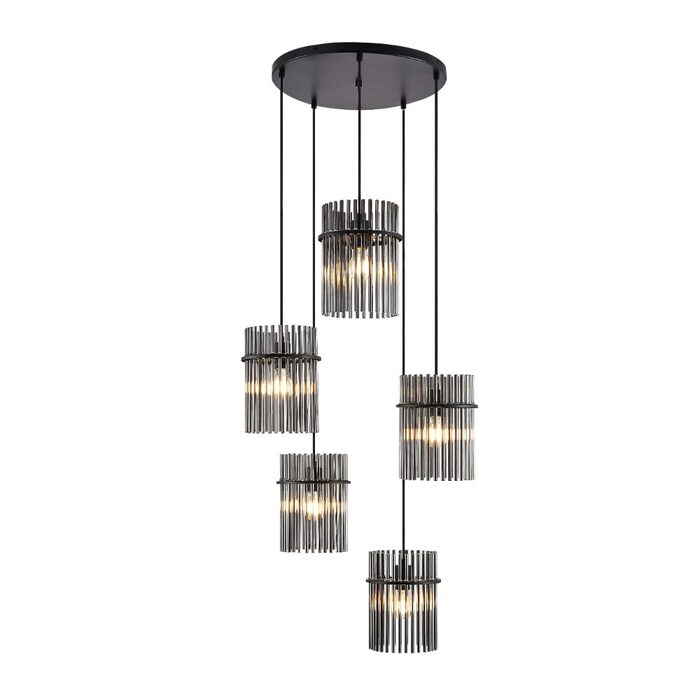 Each piece features a shade crafted from sleek glass rods in a sophisticated smoke colour, creating a mesmerizing effect when illuminated.