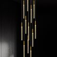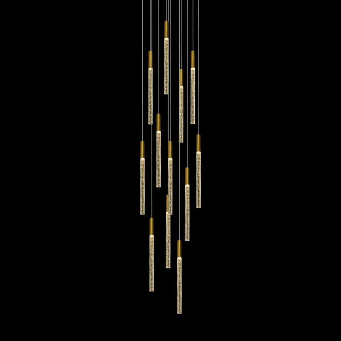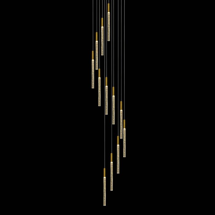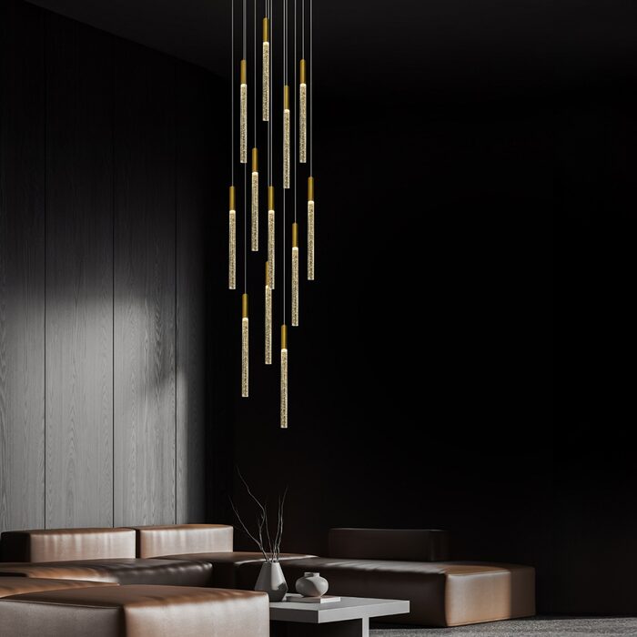 Perfect for contemporary spaces, its warm gold finish adds a touch of sophistication, while the twelve cascading lights create a beautiful ambiance.