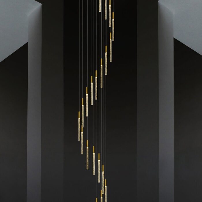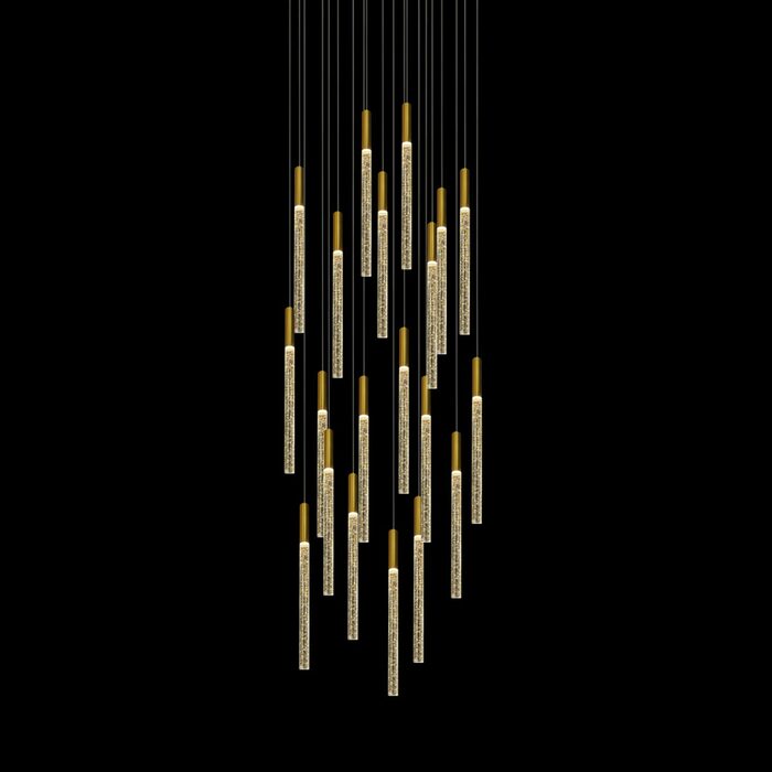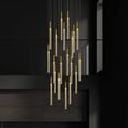 Introducing the Raindrop 20lt Gold Pendant from Modern Lights, a perfect blend of luxurious design and superior craftsmanship. This exquisite lighting fixture features 20 elegantly arranged raindrop-shaped lights, creating a captivating display that adds depth and sophistication to any space.