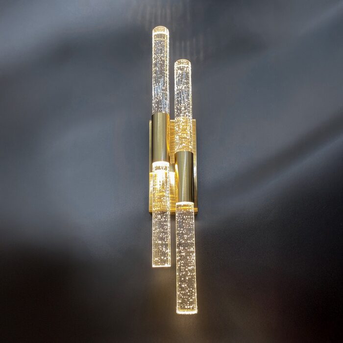 Introducing the Raindrop Double Wall Light - a stunning and one-of-a-kind designer lighting fixture that will elevate any room.
