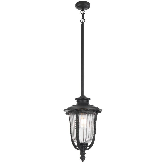 Constructed from durable aluminium with textured glass, the pendant features a versatile multi-suspension design—allowing installation via chain, rod, or a combination of both to customise the drop length.