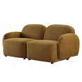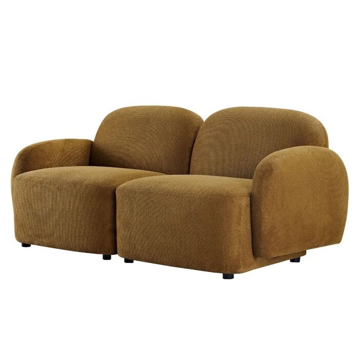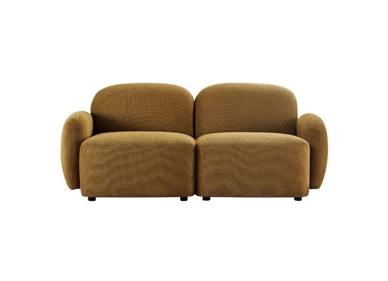 Upholstered in a soft toffee-toned fabric, this compact sofa features a solid timber frame, pocket spring seating and plush foam cushioning for lasting support.