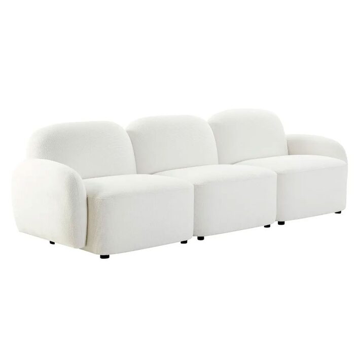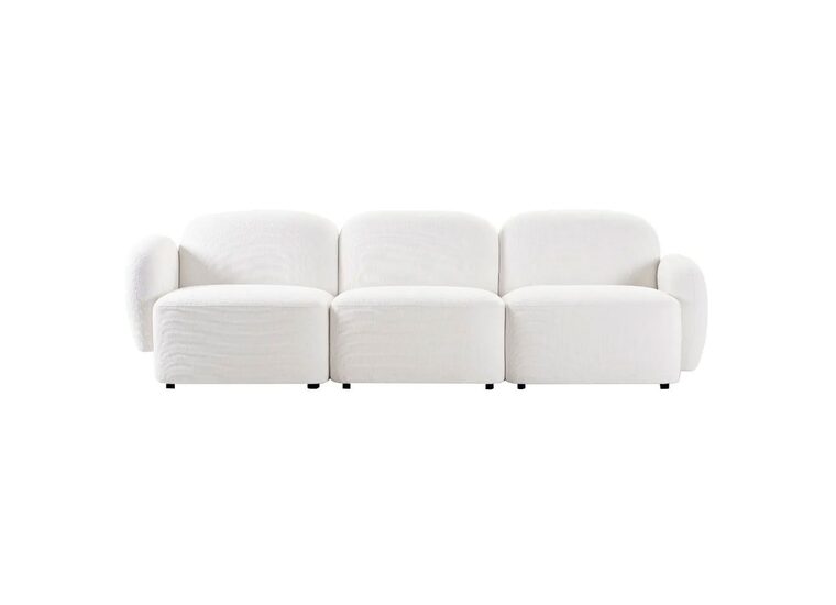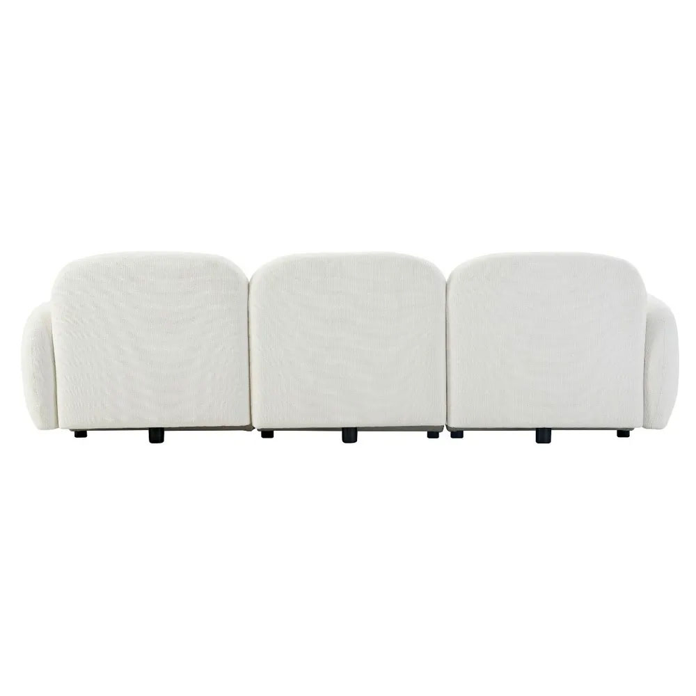 Embracing sculptural form and modular function, this seating collection features a low profile design with softly contoured curves and plush white chenille upholstery.