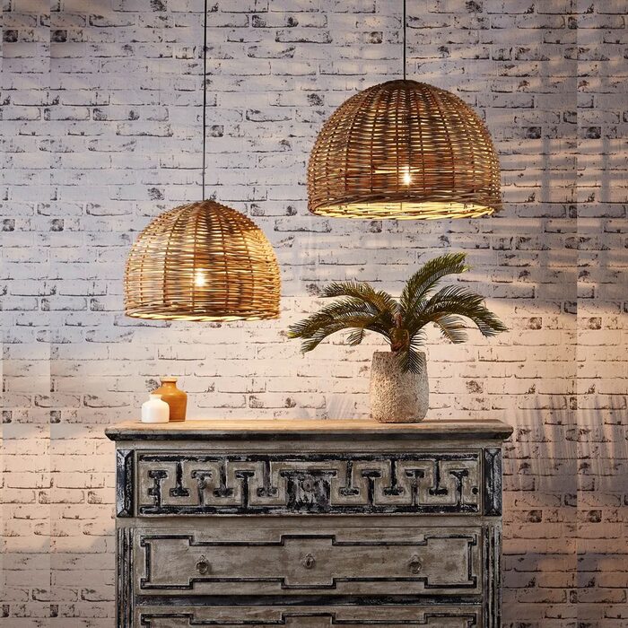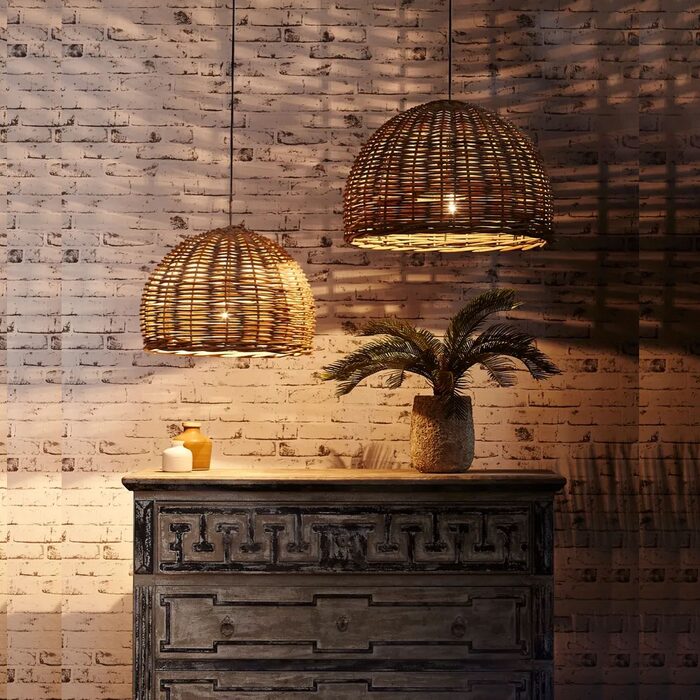 Our rattan round pendant is made from natural rattan with pale colour and dome shape, that glows beautifully when lit.