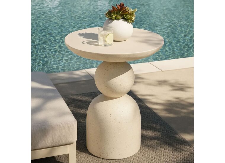 A sculptural statement of organic beauty, the Ravello Side Table captivates with its three-layered concrete form in a matte finish.