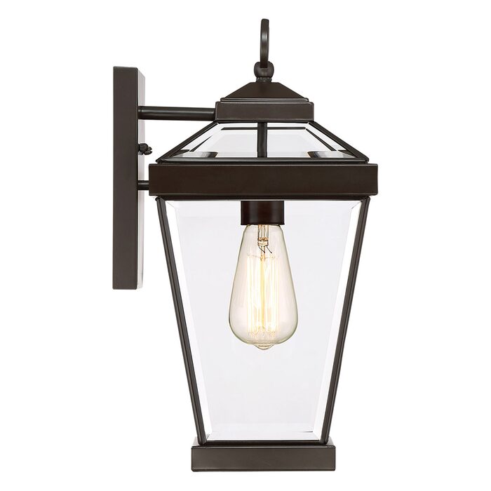 The rich Western Bronze on the base showcases the clear bevelled glass panels on the sides and top of the fixture.
