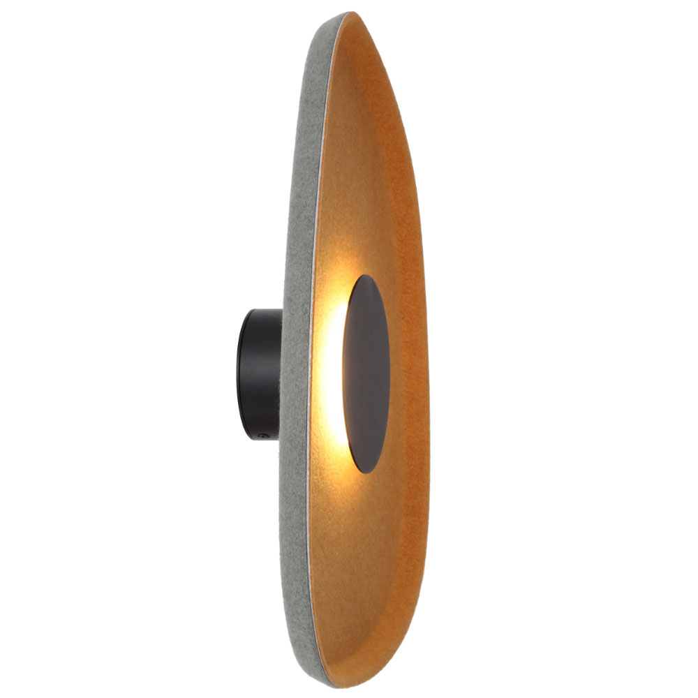 Constructed from aluminium and felt, it features acoustic properties that help absorb sound while emitting a warm 3000K LED glow.