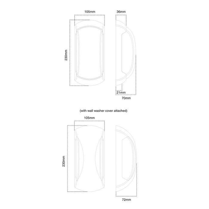 LED 12 watt Polycarbonate bulkhead, IP65 with wall washer option included