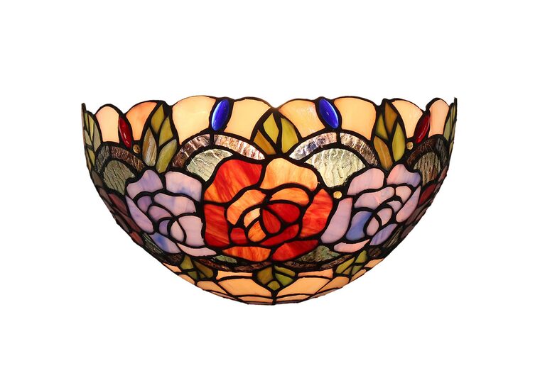 The Red Rose wall lamp is a colourful Tiffany style lamp that combines many pieces of art glass to create a stunning and complex design.