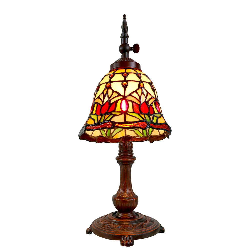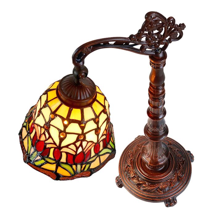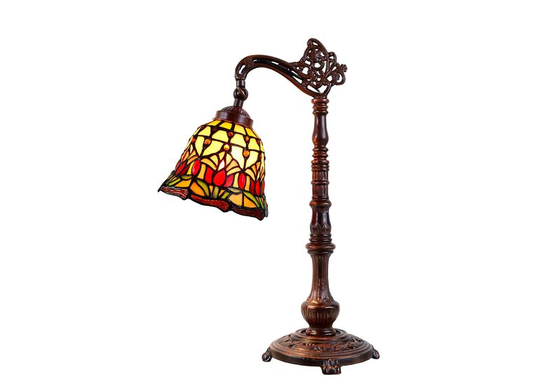 The Red Tulip lamp is a colourful Tiffany style lamp that combines many pieces of art glass to create a stunning and complex design.
