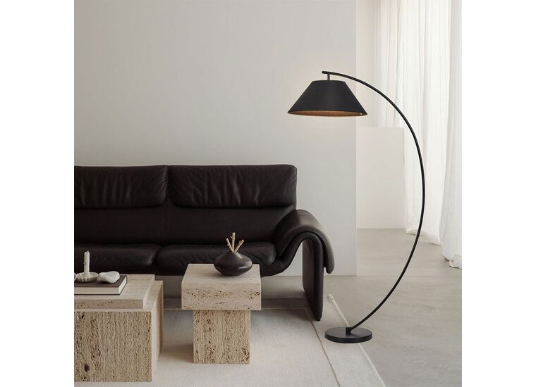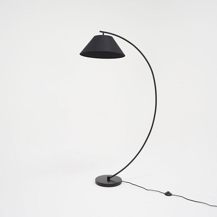 Paired with a shallow white or black rayon PVC shade, this floor lamp will happily sit in both a modern and more traditional interior.