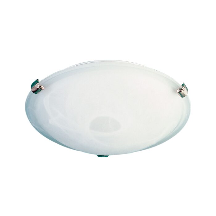 Classic alabaster glass ceiling light available in 30cm or 40cm diameter. Choose from brushed chrome, white or gold-finished metal clips. Ideal for use with an opal LED globe, for most rooms.