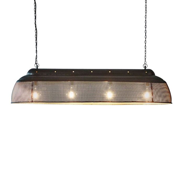 A new addition to the Riva range. Perfect for over a kitchen counter or dining table. The Riva Extra Long takes 4 light globes and has 2 chains and ceiling roses to balance the shade. Only one of the ceiling roses has the electrical port.