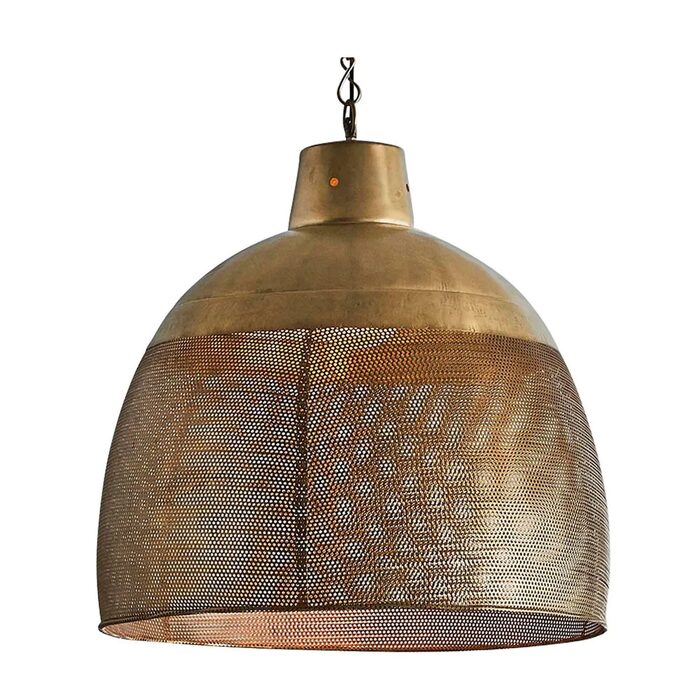 A rustic perforated pendant light with an industrial feel. This pendant is designed to patina over time for a vintage aesthetic.