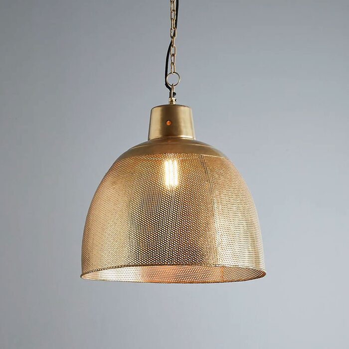 A rustic perforated pendant light with an industrial feel. This pendant is designed to patina over time for a vintage aesthetic.