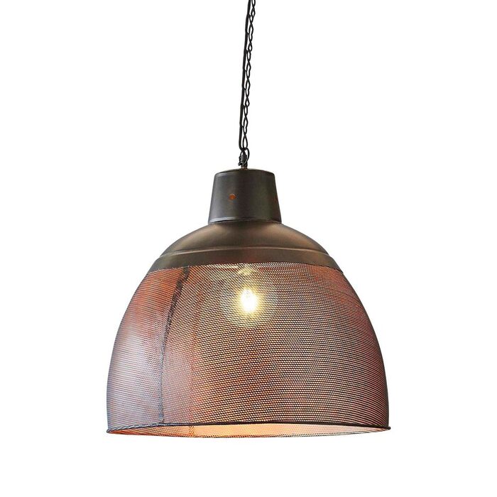 A rustic perforated pendant light with an industrial feel. This pendant is designed to patina over time for a vintage aesthetic.