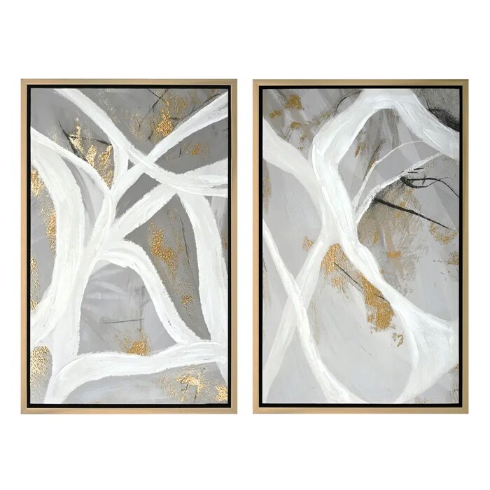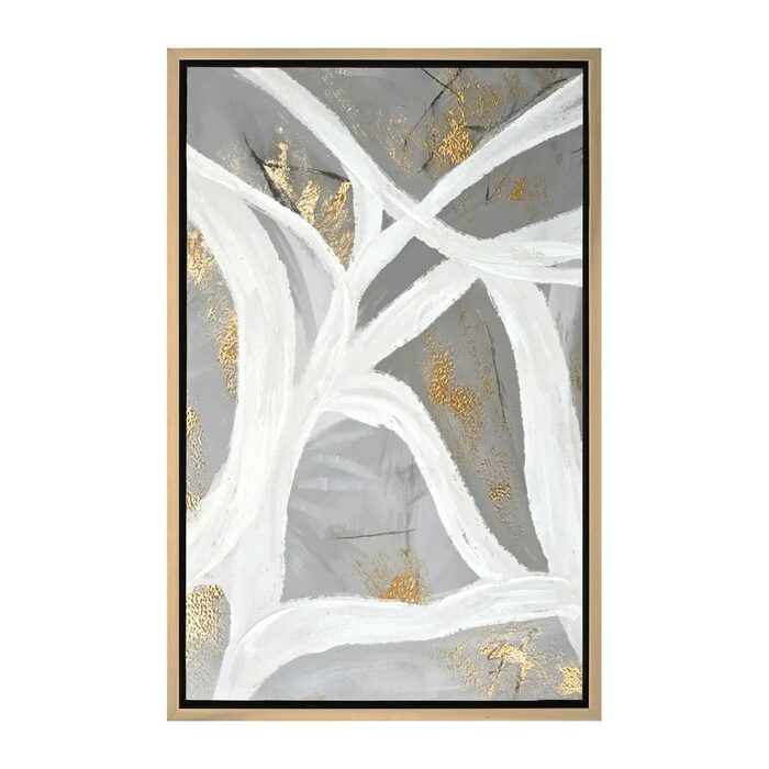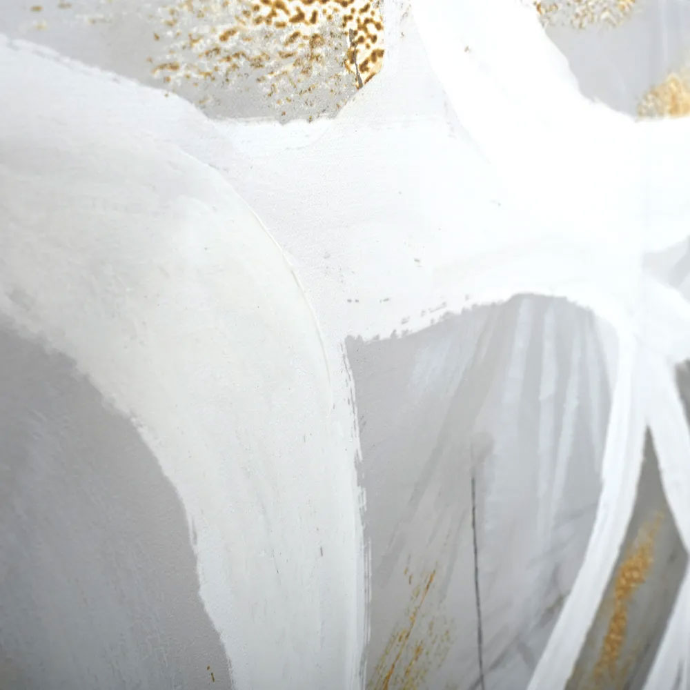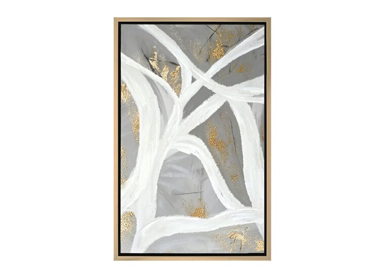 Rivers of Ideas Series I enhanced canvas print creates a serene mood through the use of flowing brush strokes and a fresh, neutral colour palette with metallic highlights.