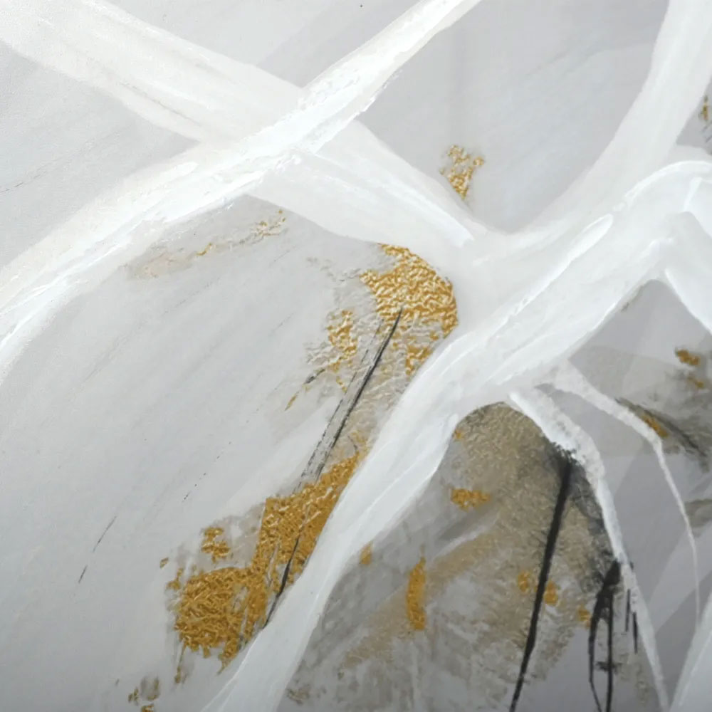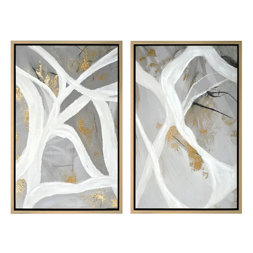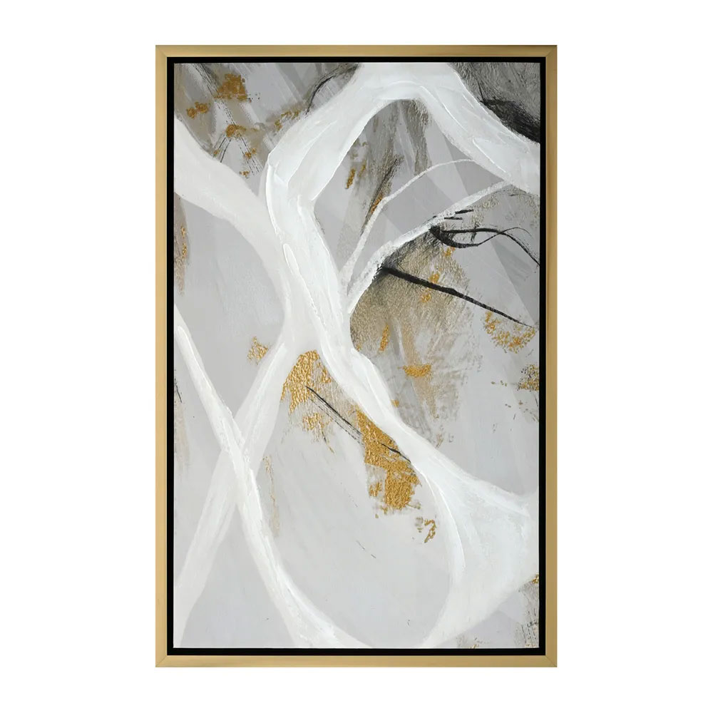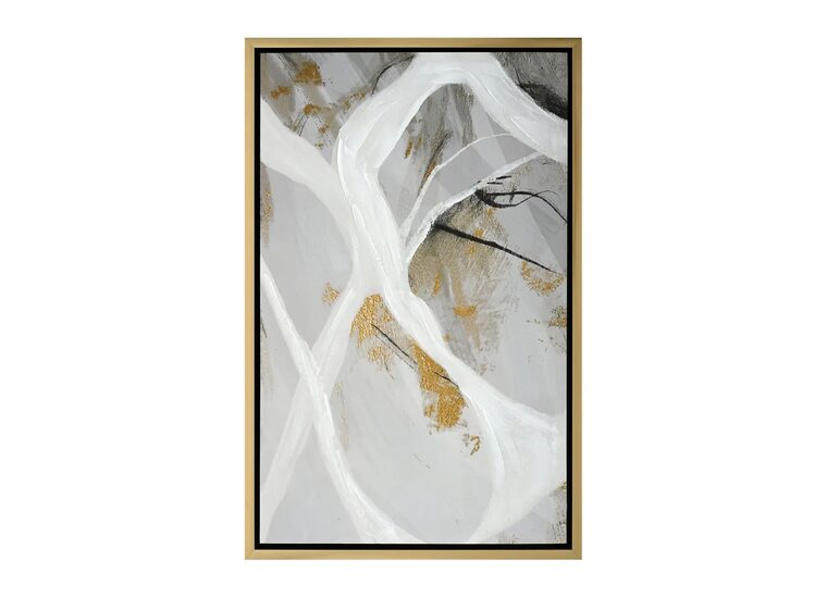 A composition inspired by nature, Rivers of Ideas Series II enhanced canvas print creates a serene mood through the use of flowing brush strokes and a fresh, neutral colour palette with metallic highlights.