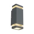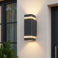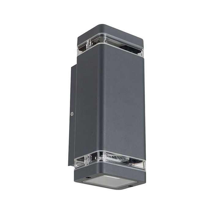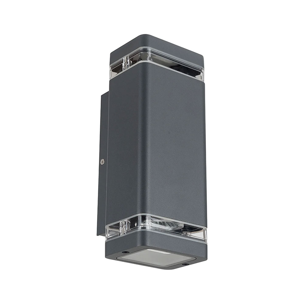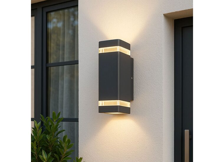 Illuminate your exterior with the Rivo Up/Down LED CCT Outdoor Wall Light, featuring a modern rectangular matte charcoal frame and crystal-clear glass insets that cast elegant dual-direction illumination to accentuate architectural lines and brighten pathways.