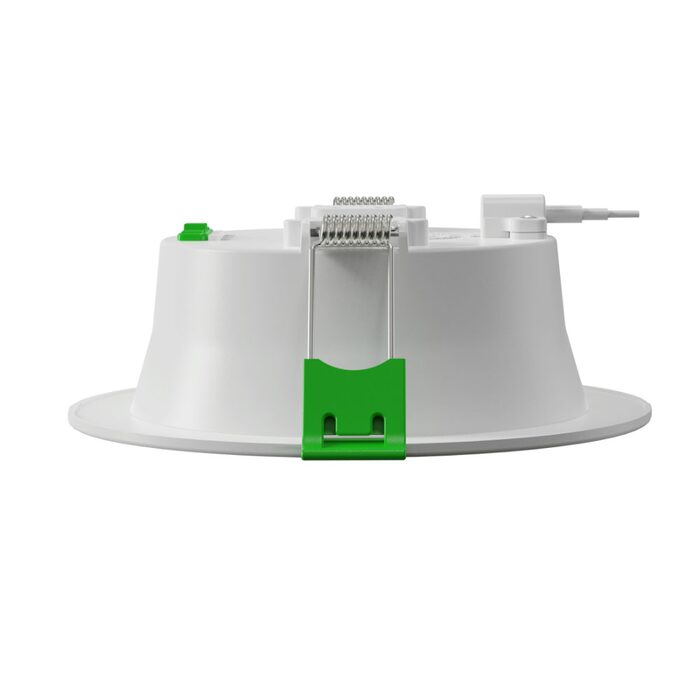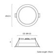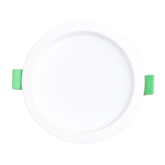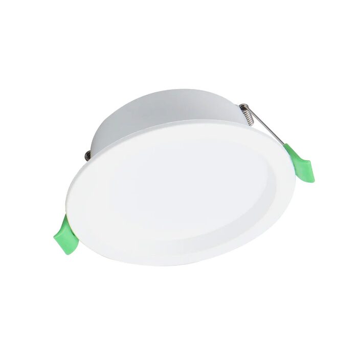Dimmable IP44 9W LED downlight with selectable colour temperature.