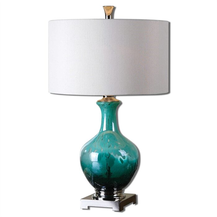 Crackled light blue ceramic with polished nickel details and a black foot.