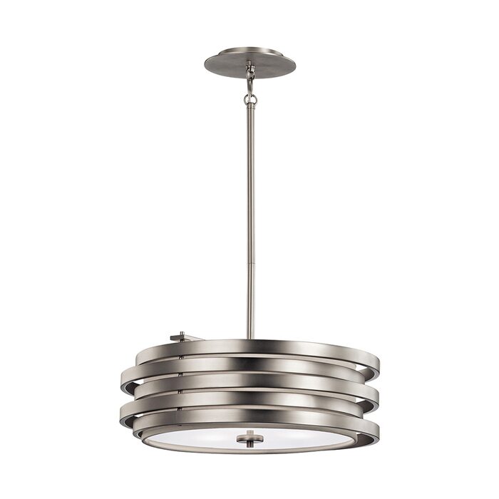 The Brushed Nickel outer finish and beautiful Satin Etched Glass form a distinctive, linear design.