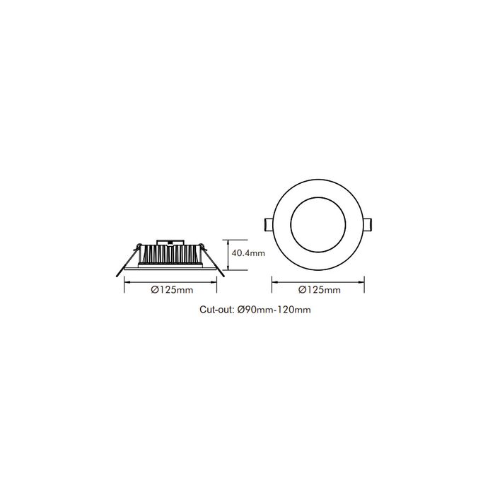 Dimmable IP54, 15W LED downlight with selectable colour temperature.