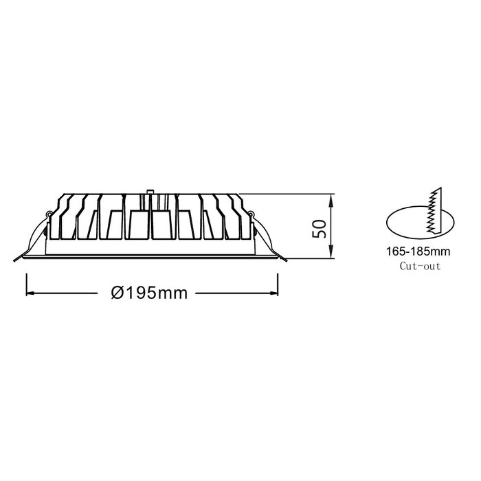 - Cutout: 165mm - 185mm