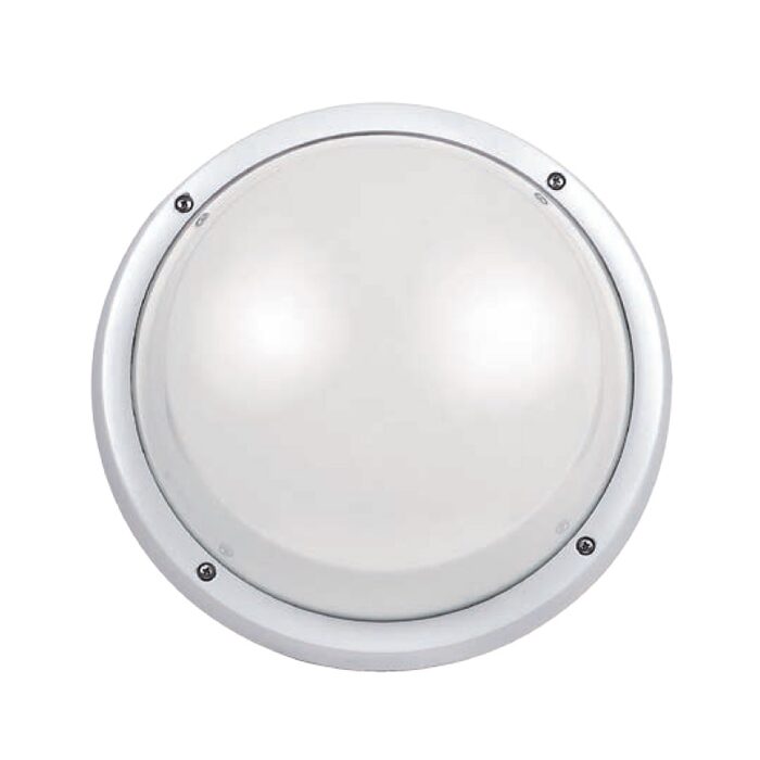This round exterior light can be mounted on a wall as a bulkhead or fitted flush to the ceiling in an outdoor porch.