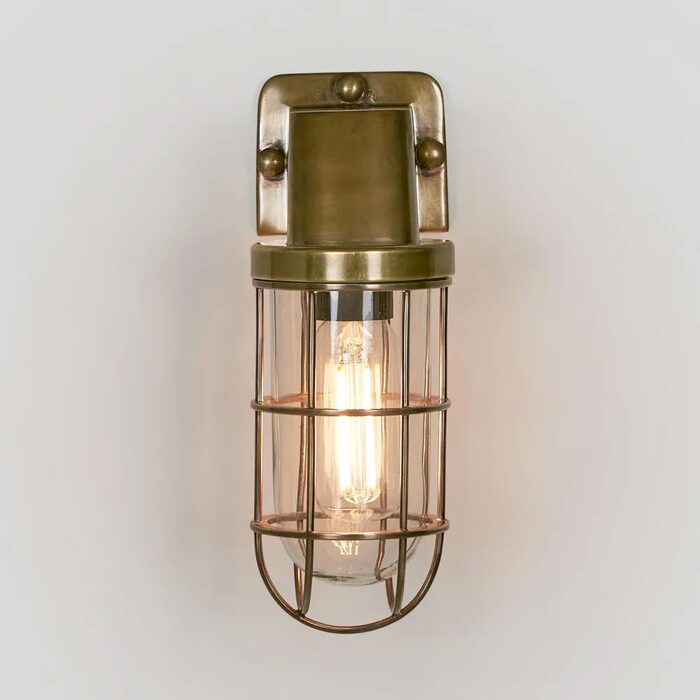 Our Royal London wall light is IP-rated 54 wall sconce with clear glass and brass metal cage, which suitable for indoor and outdoor use. .