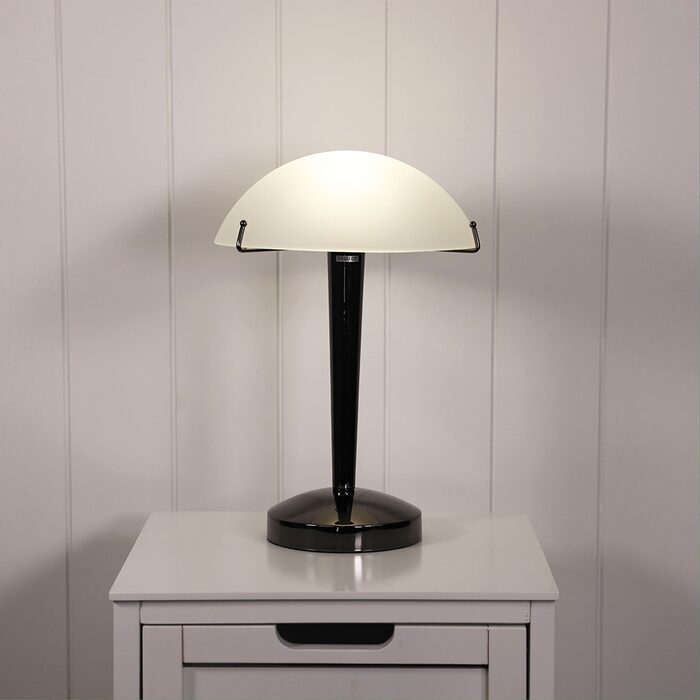 The on/off touch lamp works well with all types of bulbs, including LED. This stylish lamp is perfect for bedside.