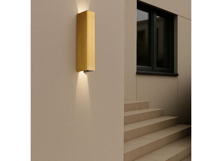The Ryland exterior wall light is a simple yet bold and elegant design, available in black, brass, or rusty finishes to complement various architectural styles.