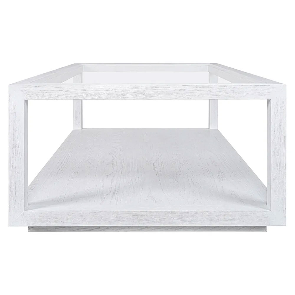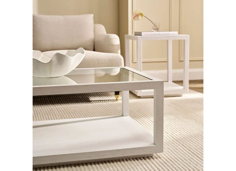 Bringing this refined aesthetic into focus, the Sadie Rectangular Coffee Table features a brushed oak frame in a crisp white finish, adding a fresh and airy feel to any space.
