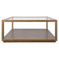 Featuring a square tempered glass top and a sleek gold-finished metal frame, this piece creates an airy, open feel while adding warmth and sophistication.