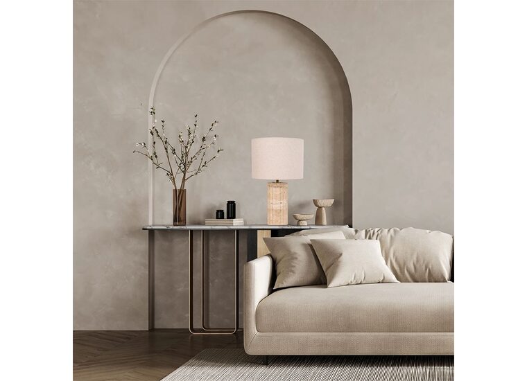 Topped with a soft cream fabric shade, this lamp brings a perfect balance of natural texture and contemporary elegance.