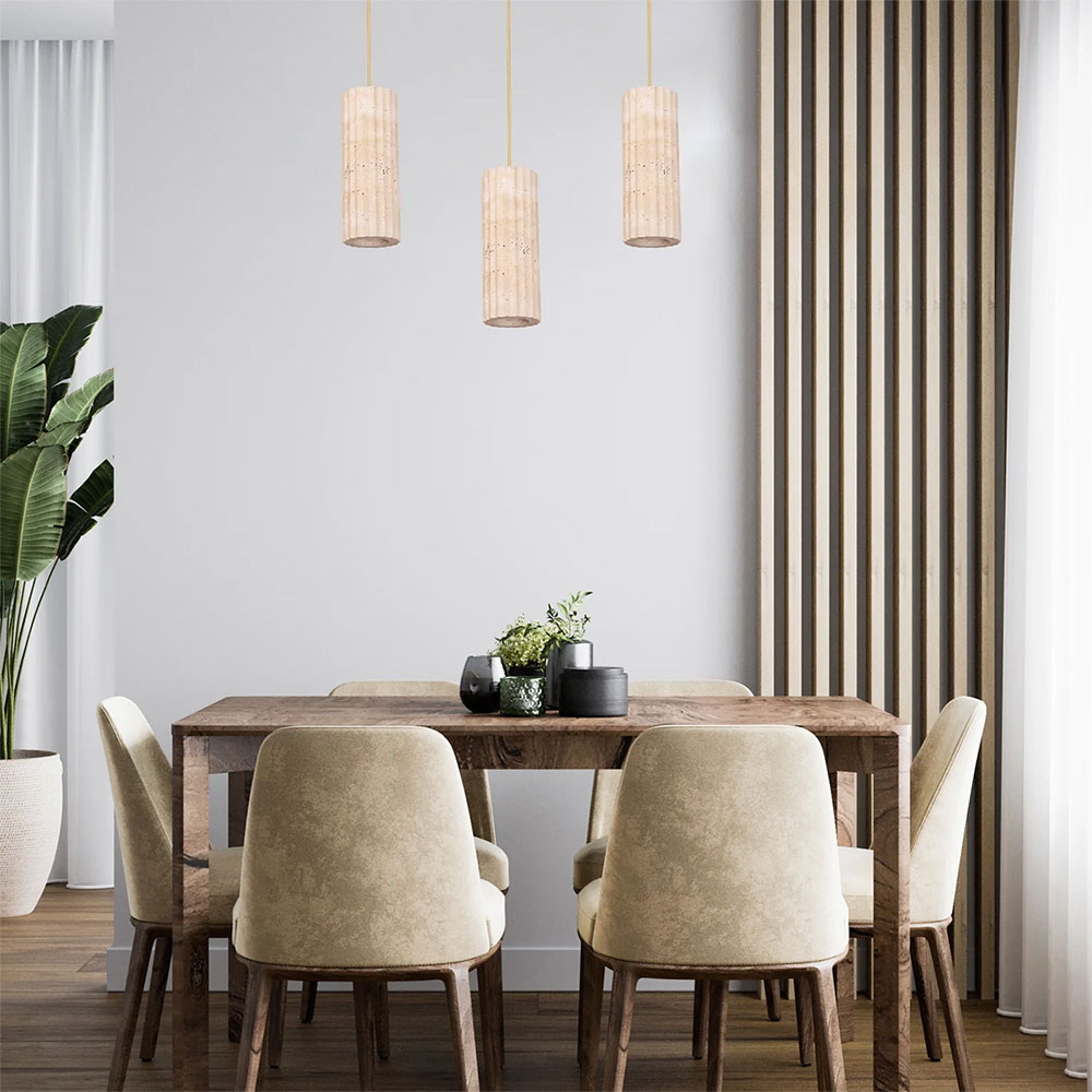 Introduce a touch of natural elegance to your home with the Sagitta Interior Oblong Beige Travertine Pendant Light.